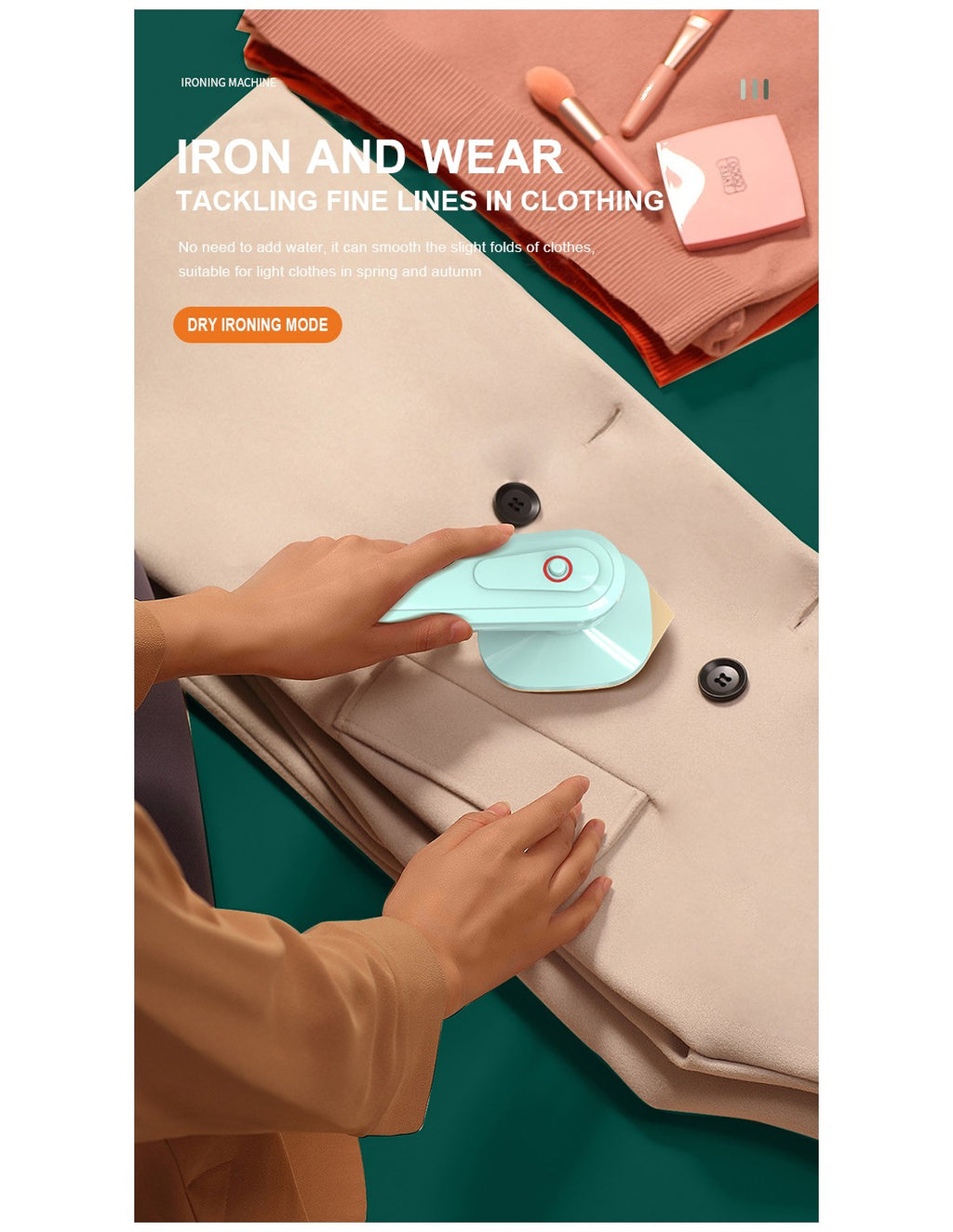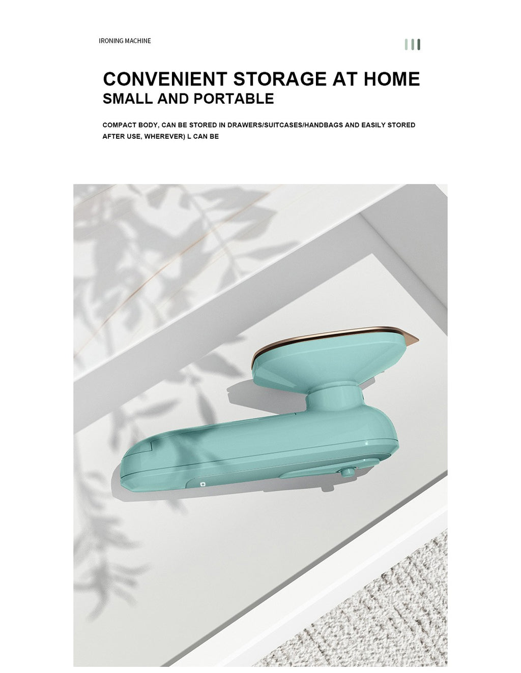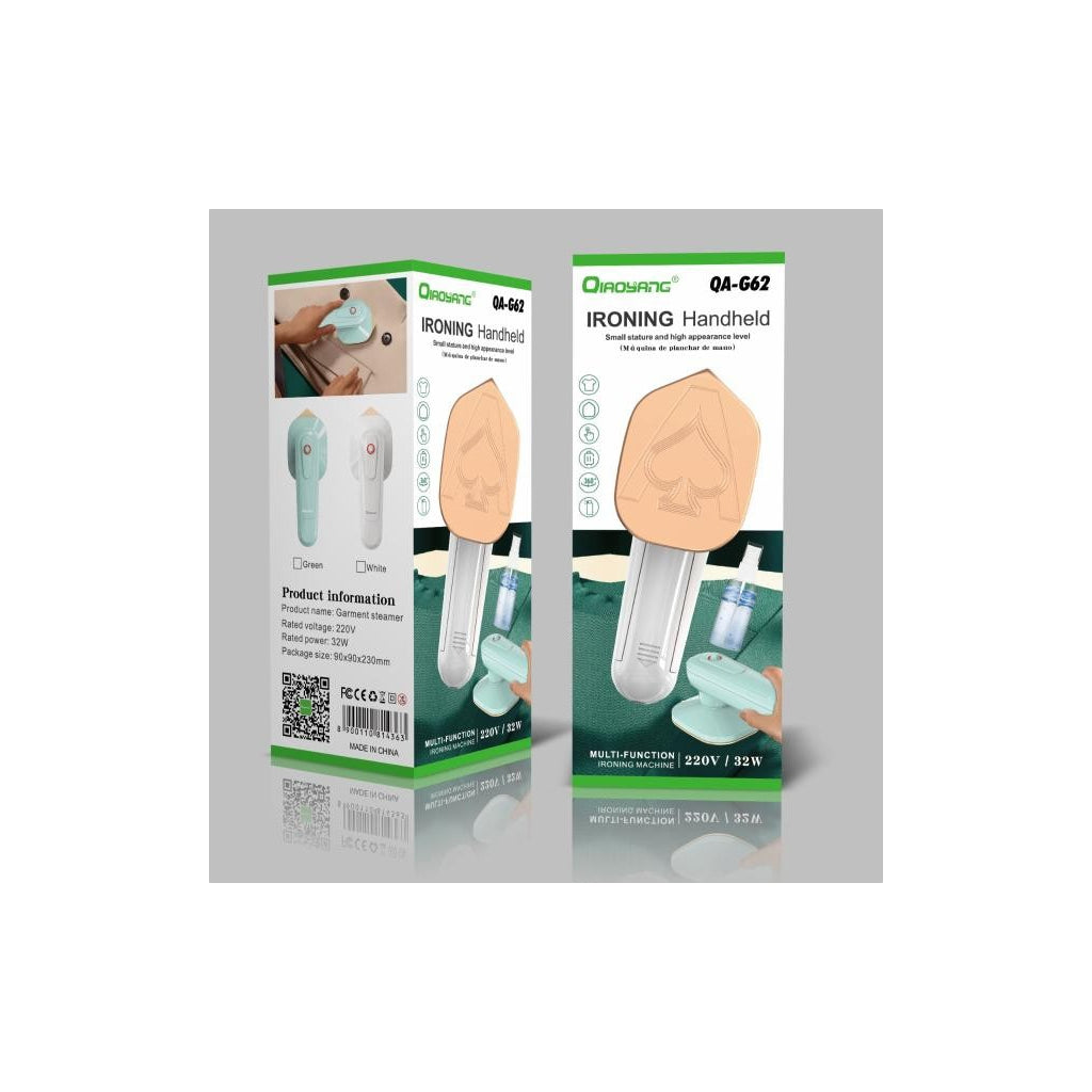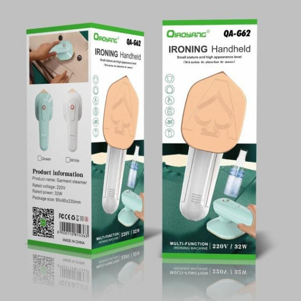 Ferro de Engomar Portátil – Compacto e Prático para Qualquer OcasiãoEste ferro de engomar portátil combina funcionalidade e design moderno, ideal para viagens ou retoques rápidos em casa. Leve e fácil de manusear, é perfeito para garantir roupas impecáveis em poucos minutos.Características Principais:Compacto e Leve:Design ergonómico que facilita o transporte, ideal para viagens ou pequenos espaços.Multifunções:Perfeito para engomar, vaporizar e alisar tecidos delicados.Rápido Aquecimento:Pronto para uso em segundos, proporcionando eficiência e rapidez no dia a dia.Segurança Garantida:Desligamento automático em caso de sobreaquecimento.Fácil Utilização:Botões intuitivos para ajustes de temperatura e vapor.Especificações Técnicas:Voltagem: 220V.Potência: 32W.Dimensões: 90mm x 90mm x 230mm.Peso: 600g.Cores disponíveis: Verde e Branco.Material: Plástico ABS e placa de aquecimento em alumínio.