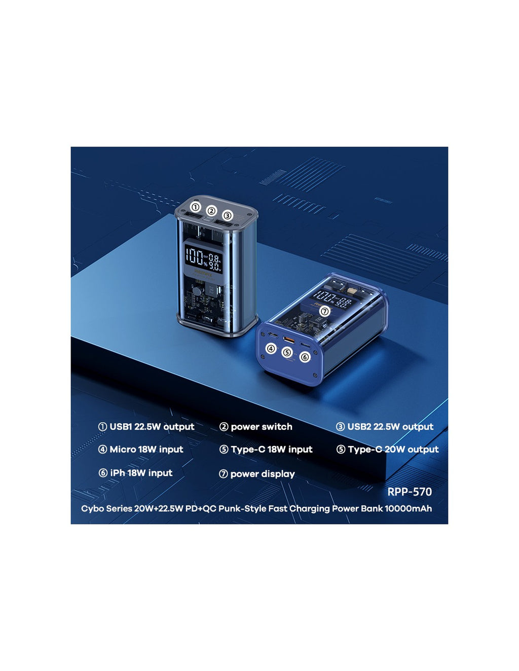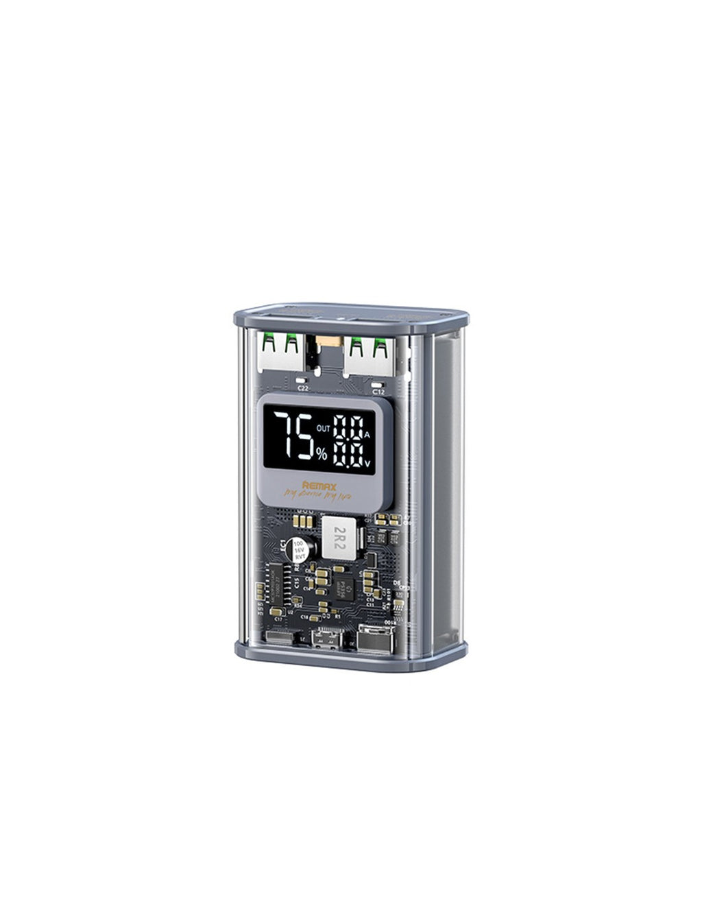 Power Bank CyberPunk 10000mAh – Carregamento Rápido e Design FuturistaOPower Bank CyberPunk 10000mAhcombina alta eficiência e um design inovador. Perfeito para quem valoriza funcionalidade e estilo, este carregador portátil é ideal para viagens, trabalho ou uso diário, mantendo os seus dispositivos sempre com energia.Características Principais:Alta Capacidade (10000mAh): Carregue o seu smartphone, tablet ou outros dispositivos várias vezes com uma única carga.Carregamento Rápido (Fast Charging): Compatível com tecnologia de carregamento rápido, garantindo eficiência e economia de tempo.Ecrã LED Transparente: Mostra a percentagem de bateria em tempo real, além de informações de voltagem e amperagem.Design Futurista CyberPunk: Estrutura transparente com detalhes de circuito visíveis, conferindo um visual moderno e único.Conexões Múltiplas: Possui portas USB e USB-C para maior versatilidade.Benefícios:Portabilidade e Conveniência: Compacto e leve, cabe facilmente na mochila ou bolsa.Carregamento Simultâneo: Permite carregar mais de um dispositivo ao mesmo tempo.Segurança Garantida: Proteção contra sobrecarga, curto-circuito e superaquecimento.Especificações Técnicas:Capacidade: 10000mAh66WPD 20WConexões: USB, USB-CEcrã: LED transparenteCompatibilidade: Smartphones, tablets, smartwatches e outros dispositivos USBDesign: Estilo CyberPunk com estrutura visível